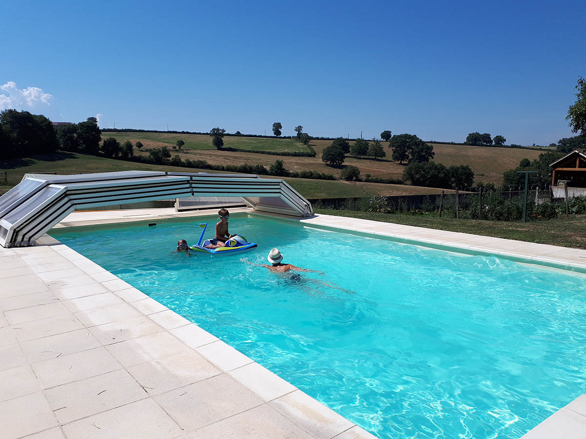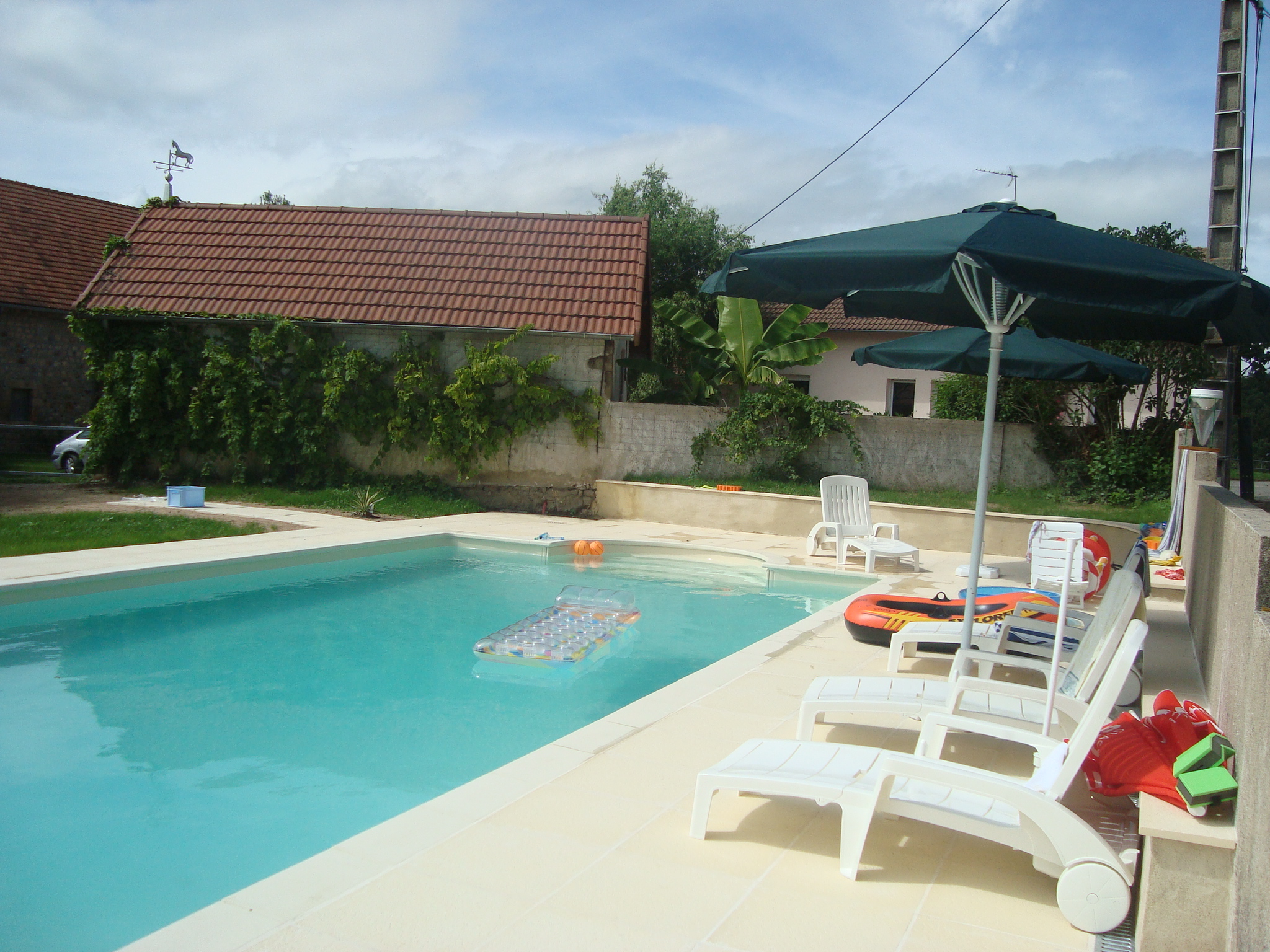 À l’arrière du gîte, un grand terrain arboré de 1 000 m² non clos est réservé aux résidents. Il est équipé d’un portique, d’un salon de jardin, d’un barbecue au bois (à disposition) ou au charbon de bois (à apporter), d’un terrain de pétanque, d’un filet de volley et d’une table de ping-pong (à apporter).