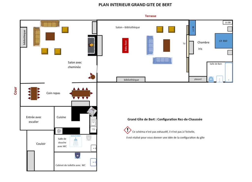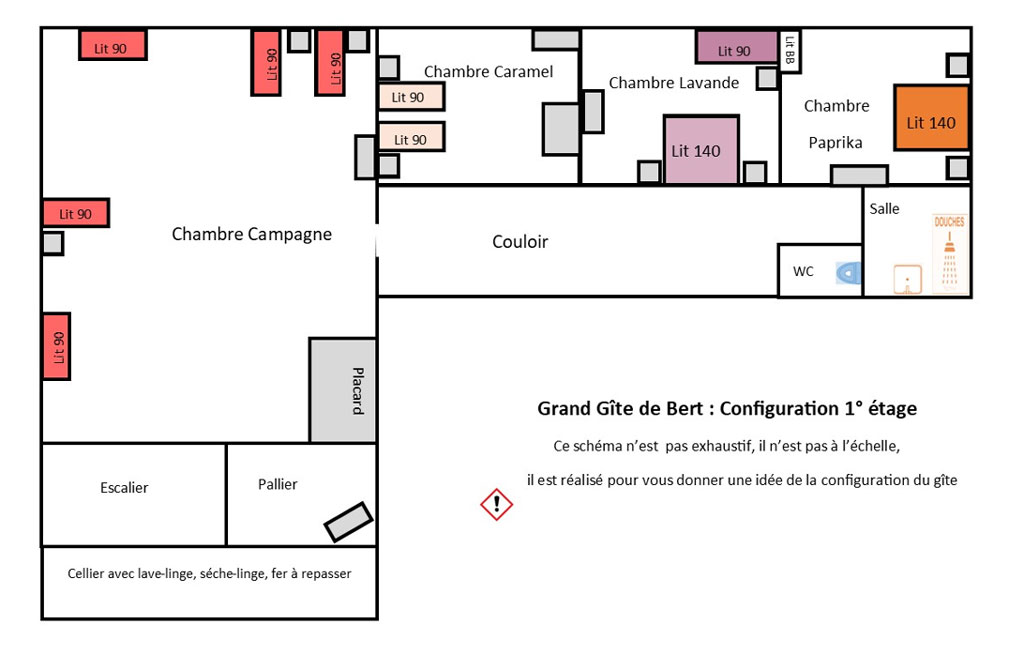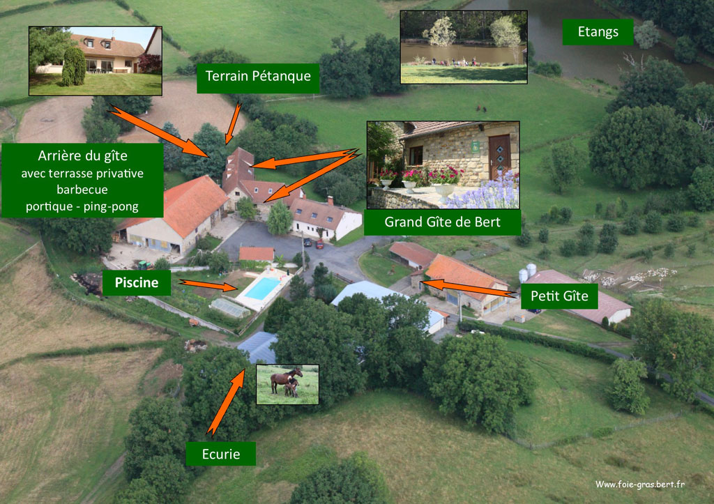 Annexe de 45 m2 : maximum 4 personnes, située dans la cour à 60 m du Grand Gîte (voir plan).